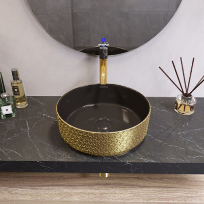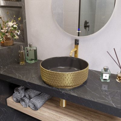 Раковина накладная 35,5 см Grossman GR-5010GB золото черная внутри
