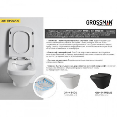 Унитаз Grossman GR-4440BMS подвесной Черный безободковый