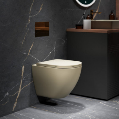 Унитаз подвесной безободковый с тонкой крышкой Grossman GR-4455BEMS Бежевый