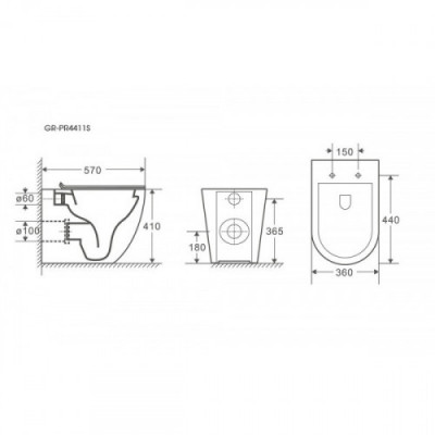 Артикул GR-PR4411S Материал Фаянс Длина, см 57 Ширина, см 36 Высота, см 41 Унитаз безободковый с горизонтальным выпуском и антигрязевым покрытием. В комплекте сиденье из дюропласта с микролифтом.