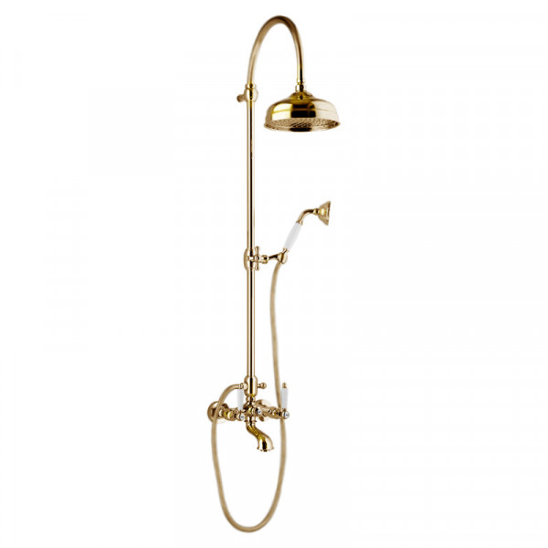 Срок поставки: 10-14 дней Артикул DO721208010 Страна Италия Материал Латунь Цвет Золото Душевая система Webert Dorian DO721208010. Монтаж - настенный. Управление - 1-рычажный. Форма - округлая. Цвет - золото. Материал - латунь. Комплектация: смеситель, душевая лейка, шланг для душа, верхний душ, штанга, инструкция. Вес - 8 кг. Присоединительный диаметр - 1/2". Страна производитель - Италия. Гарантия - 5 лет