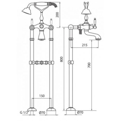 Смеситель напольный для ванны с душевым набором WEBERT ALEXANDRA AL 720801.015