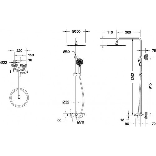 Душевая стойка с термостатическим смесителем для ванны Bravat Waterfall F639114C-A5-RUS