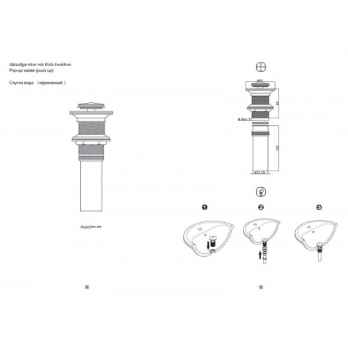 Донный клапан, латунь, с переливным отверстием, черный P6443BW-ENG