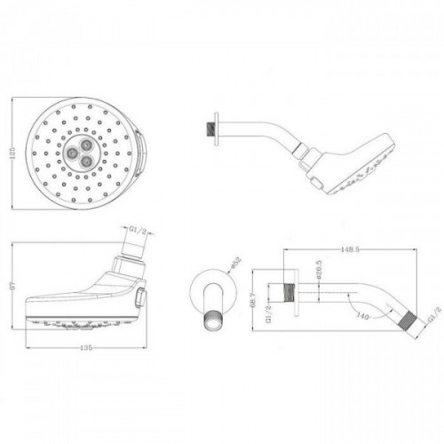 - подключение верхнего душа: 1/2”.