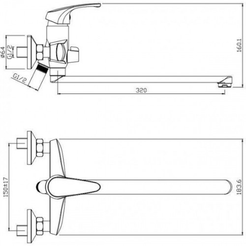 Смеситель для ванны с душем Aquanet Practic AF100-21С