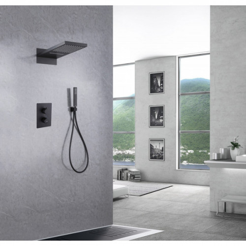 Душевая система ABBER Weiss Insel AF8052B скрытого монтажа без излива, термостат, черная матовая