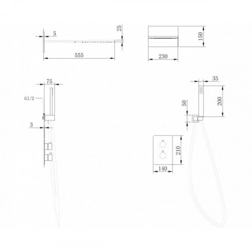 Страна Германия Гарантия 5 лет AF8052W Артикул Тип душевая система скрытого монтажа Цвет белый Монтаж скрытый Подводка жесткая Смеситель термостат Лейка в комплекте да Размер ручной лейки, см 20 Держатель для душевой лейки есть Верхний душ есть Размер верхнего душа, мм 555х230 Форма верхнего душа прямоугольная Система против известковых отложений есть Подсветка воды нет Излив нет