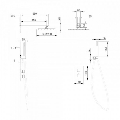 Страна Германия Гарантия 5 лет AF8251G Артикул Тип душевая система скрытого монтажа Цвет золото матовое Монтаж скрытый Подводка жесткая Смеситель термостат Лейка в комплекте да Размер ручной лейки, см 20 Держатель для душевой лейки есть Верхний душ есть Размер верхнего душа, мм 250х250 Форма верхнего душа квадратная Система против известковых отложений есть Подсветка воды нет Излив нет