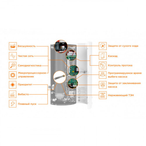 Артикул 281 Страна Россия Гарантия 2 года Длина, см Ширина, см 32 Высота, см 71 Детальное описание Мощность 6 кВт, 220 В, группа ТЭН 3х2 кВт из нержавеющей стали. Микропроцессорное управление, симисторные ключи, расширенная цифровая, светодиодная и звуковая индикация, модуляция мощности, плавный пуск с предварительным подогревом, ротация ТЭН, реле давления, интеллектуальный выход контроля протока, возможность каскадного подключения, дежурная подсветка. Вход для внешнего термостата и погодозависимой автоматики. Размер ВхШхГ — 710х323х172. Присоединительный размер 1".